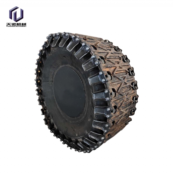 輪胎保護(hù)履帶是采用國(guó)內(nèi)外先進(jìn)生產(chǎn)工藝,利用優(yōu) 質(zhì) 合金鋼材料,經(jīng)精 密鑄造,高強(qiáng)度全自動(dòng)閃光對(duì)焊,編結(jié)構(gòu)合理,利用特殊焊接工藝焊接而成的一種輪胎設(shè)備。保護(hù)履帶耐磨性好,抗疲勞性強(qiáng),根據(jù)使用條件壽命達(dá)3000-8000小時(shí)。拆裝方便,省時(shí)省力,產(chǎn)品規(guī)格齊全,可與進(jìn)口裝載機(jī)所匹配,輪胎保護(hù)履帶,采用高科技耐磨材料制成其結(jié)構(gòu)新穎緊湊,性能穩(wěn)定,主要適用于礦山作業(yè)的裝載機(jī)、鏟車;其輪胎磨損快,使用壽命短,輪胎價(jià)格昂貴,使用成本高,將本產(chǎn)品嚴(yán)密的包裹在裝載機(jī)的輪胎上,可以有效的保護(hù)裝載機(jī)的輪胎,不被尖銳的石塊劃傷刺破,延長(zhǎng)了輪胎的使用壽命,使用一條輪胎保護(hù)履帶,能節(jié)省十條輪胎以上的費(fèi)用還能提高裝載機(jī)的工作效率和安全是礦山作業(yè)的具備品。