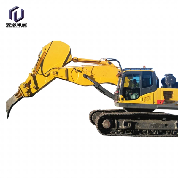 挖掘機(jī)巖石臂也稱鷹嘴臂、超級(jí)勾是風(fēng)化石、頁(yè)巖石、紅沙巖等挖掘破碎的利器,比傳統(tǒng)的破碎錘作業(yè),具有高 效率低損耗的好處,相比傳統(tǒng)的爆破作業(yè)而言作業(yè)效率更高,破碎成本更低,維護(hù)成本也很低。因?yàn)檎w的臂進(jìn)行縮短和內(nèi)部填充加重,像 45 噸左右的機(jī)型大小臂可達(dá) 16-17 噸,能夠很大程度上面增加了挖掘機(jī)的挖掘力度,能夠克服更加惡劣的工作環(huán)境。